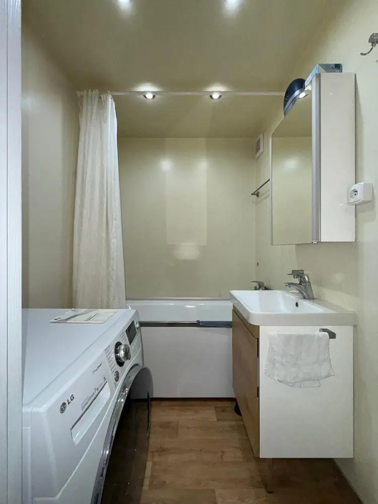 Velkým benefitem jsou i úložné prostory na čtvercové chodbě najdete velké vestavěné skříně, které elegantně pojmou vše potřebné. Koupelna a WC jsou samostatné a v koupelně zůstává k dispozici pračka.
