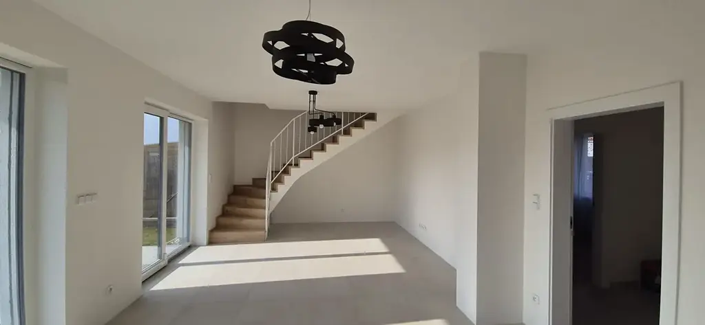 • Materiály: Dům je postaven v nadstandardu – dřevěné dubové podlahy, velkoformátová dlažba, bezfalcové magnetické dveře a okna s izolačními trojskly.