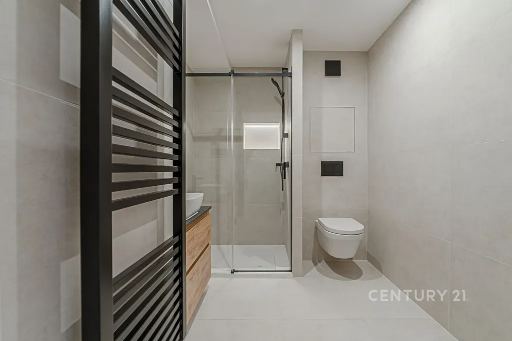 Byt prošel důkladnou a kvalitní rekonstrukcí s důrazem na detail, funkčnost a dlouhodobou hodnotu. V interiéru se pracovalo s kvalitními materiály – italské obklady, koupelna včetně sanity Villeroy & Boch, precizně řešené kamenické rohy pro čisté linie.