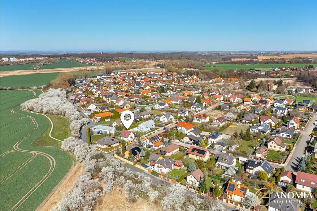 Nemovitost se nachází v klidné části obce tvořené převážně rodinnou zástavbou. Lokalita je vhodná pro ty, kteří hledají vlastní pozemek, více soukromí a příjemné bydlení mimo ruch města, ale zároveň nechtějí ztratit rychlou návaznost na Prahu.