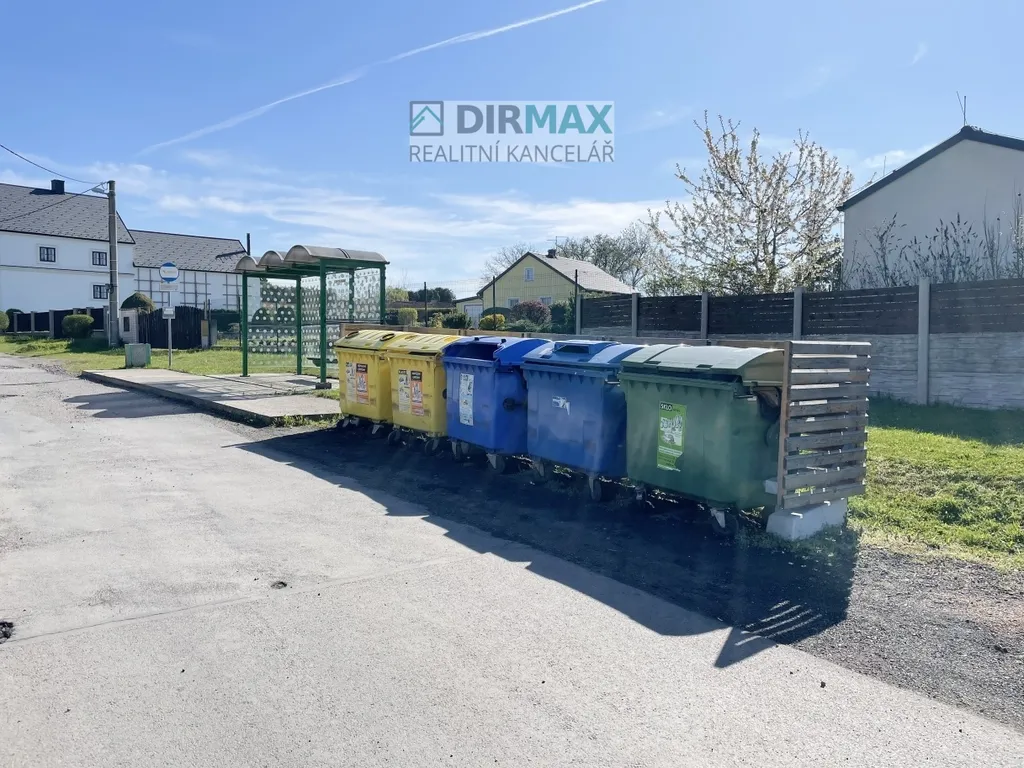 Blízko je náves viz foto s tříděným odpadem a zastávky MHD. Posledních několik foto inzerce.