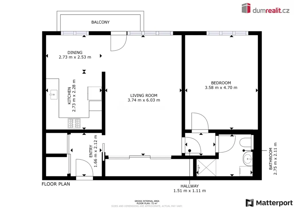 Byt je umístěn v 5. patře bytového domu a je ve velmi udržovaném stavu. Dispozici tvoří vstupní chodba se dvěma komorami, koupelna se sprchovým koutem a WC, kuchyně s jídelním stolem, obývací pokoj se vstupem na balkon a samostatná ložnice. Obývací pokoj i ložnice jsou orientovány na východ, což zajišťuje příjemné ranní světlo a klidnější atmosféru během dne.