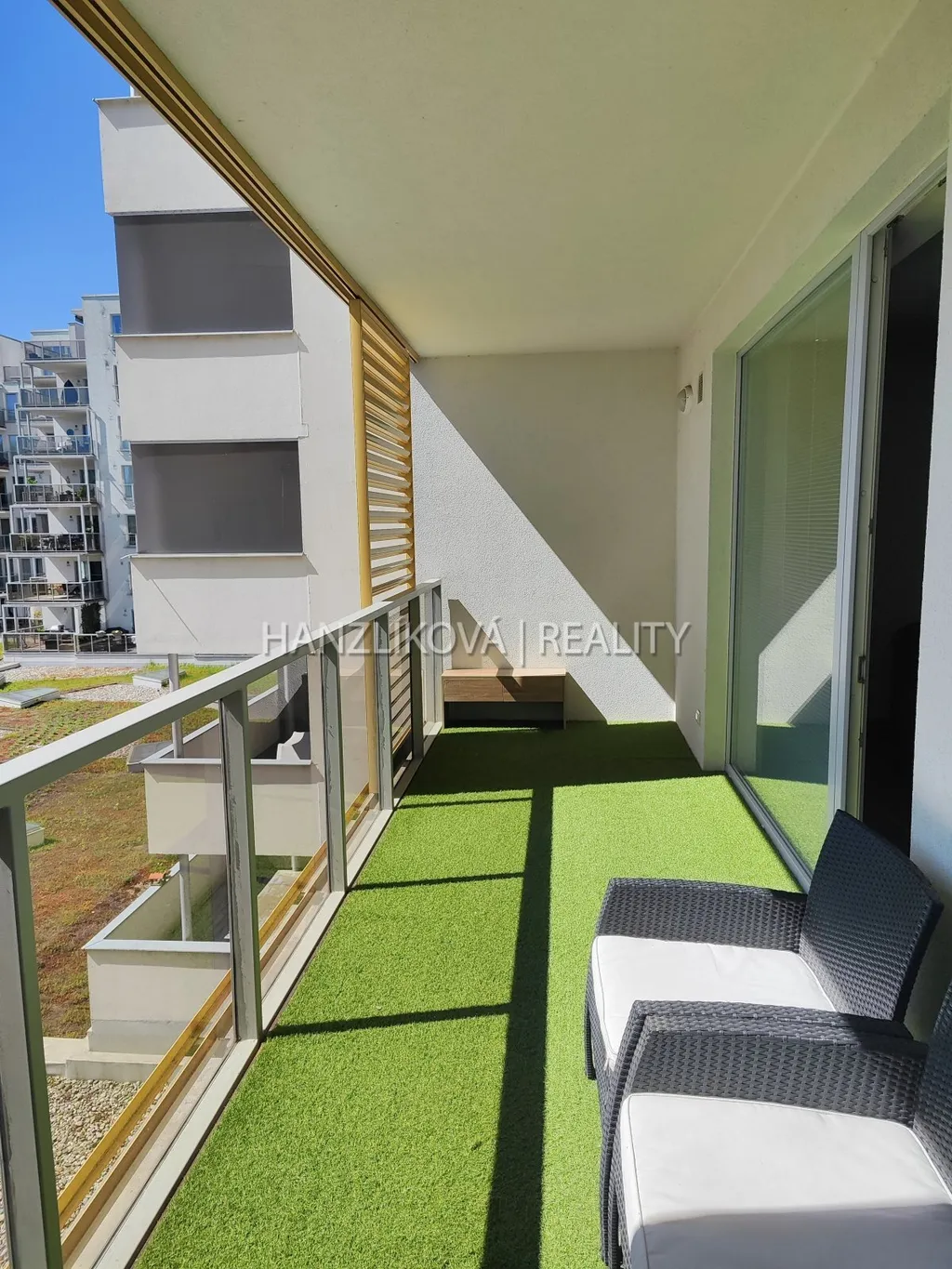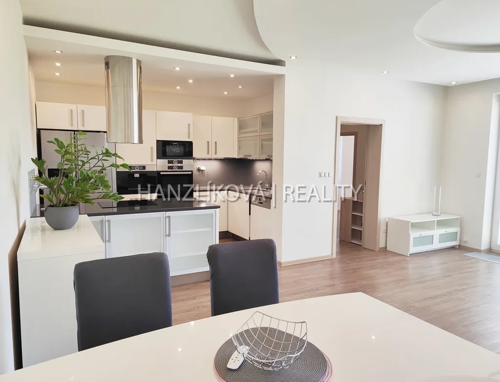 Nabízíme k pronájmu částečně zařízenou bytovou jednotku číslo E.3.02. Jedná se o byt 2+kk o výměře 74,77 m2 + terasa 13,67 m2, který se nachází ve 4.NP rezidenčního komplexu DLOUHÁ LOUKA. Byt se skládá z: prostorné chodby, šatny, koupelny s vanou a toaletou, ložnice a prostorného obývacího pokoje s částečně odděleným kuchyňským koutem, z obývacího pokoje je přístup na terasu. Byt je téměř kompletně vybaven, viz fotografie (ze spotřebičů je v bytě americká lednice, trouba, indukční varná deska, digestoř, myčka, mikrovlnka, vestavěný kávovar, pračka, sušička).