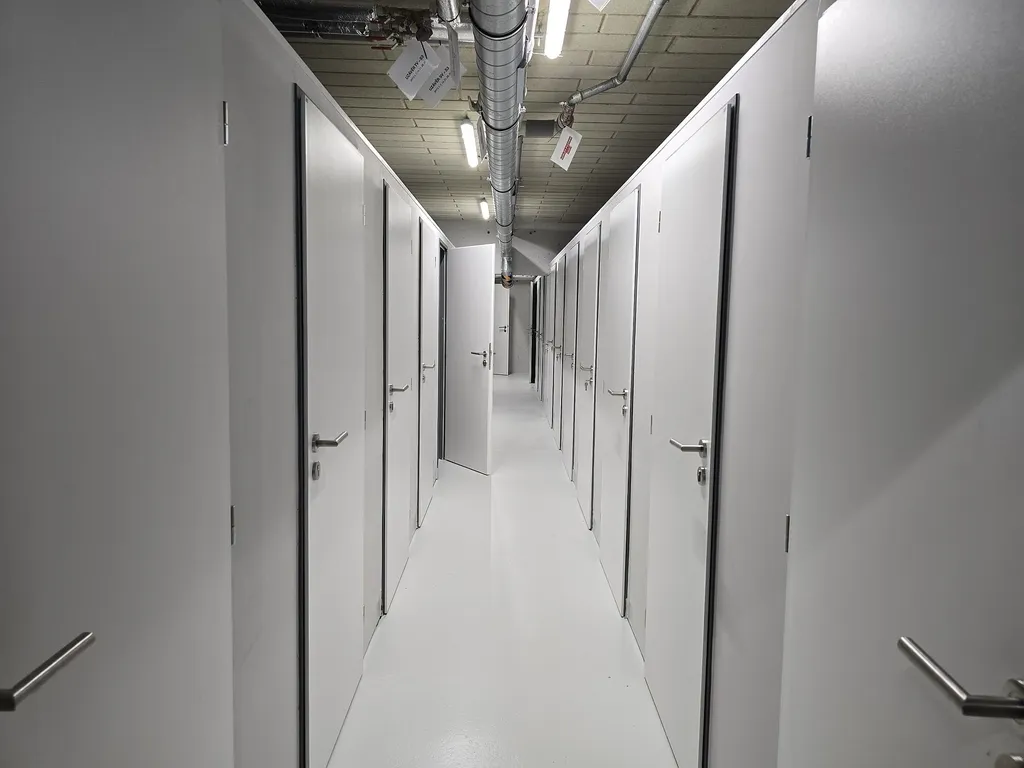 K bytu náleží sklepní kóje o velikosti cca 3 m2 a garážové parkovací stání formou autozakladače označeného č. 11 v prvním podzemním podlaží. Podlahy kryjí laminátové plovoucí podlahy nebo dlažba, okna jsou plastová. Topení a teplou vodu zajišťuje dálkový systém z teplárny.