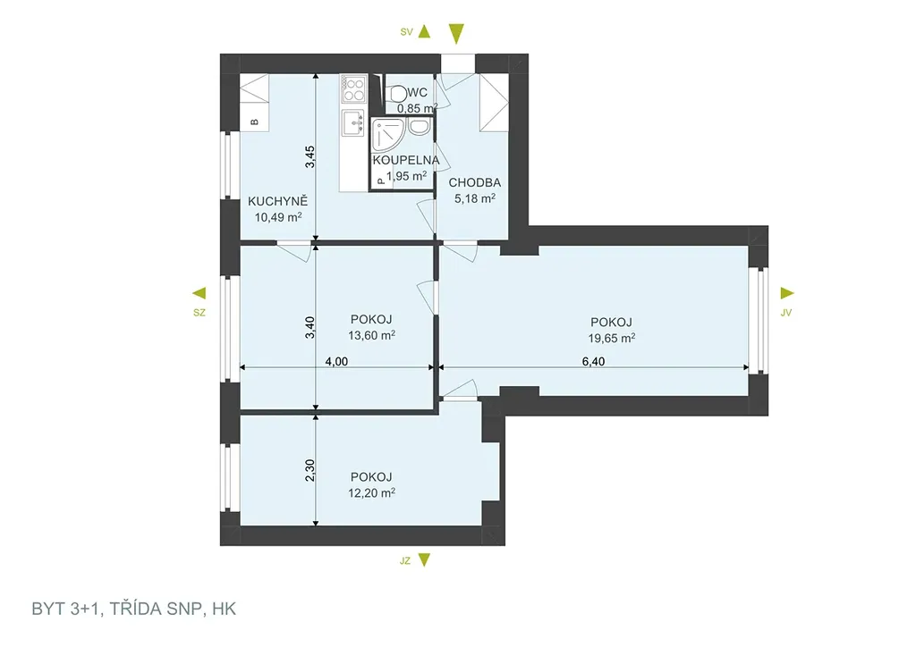 Pronájem bytu 3+1, Hradec Králové, třída SNP, 64 m2