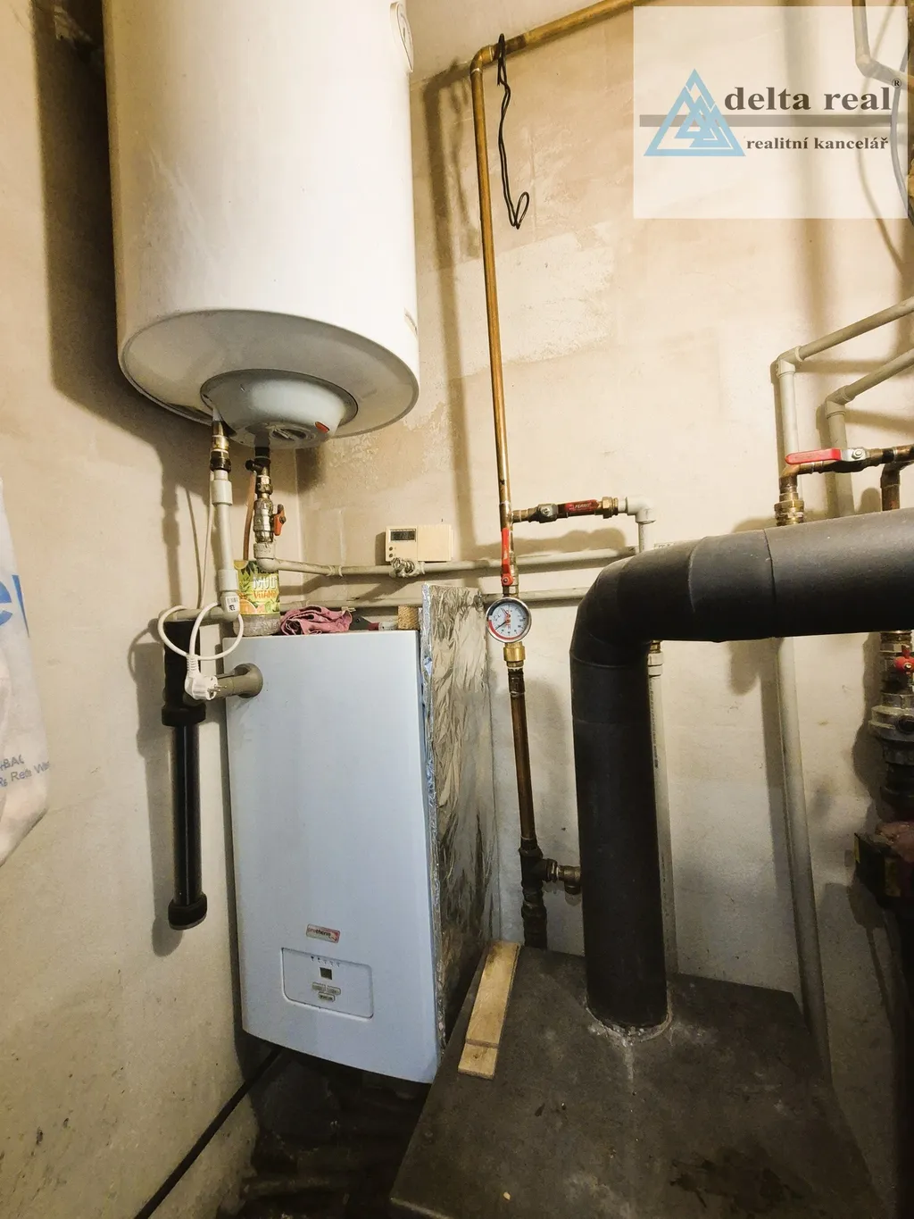 Topení je ústřední s kotlem na elektřinu a krbová kamna s výměníkem, ohřev vody je elektrickým bojlerem.