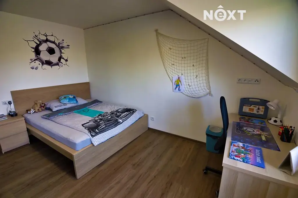 2. NP – tři samostatné ložnice, prostorná koupelna, balkon s výhledem do klidné části obce