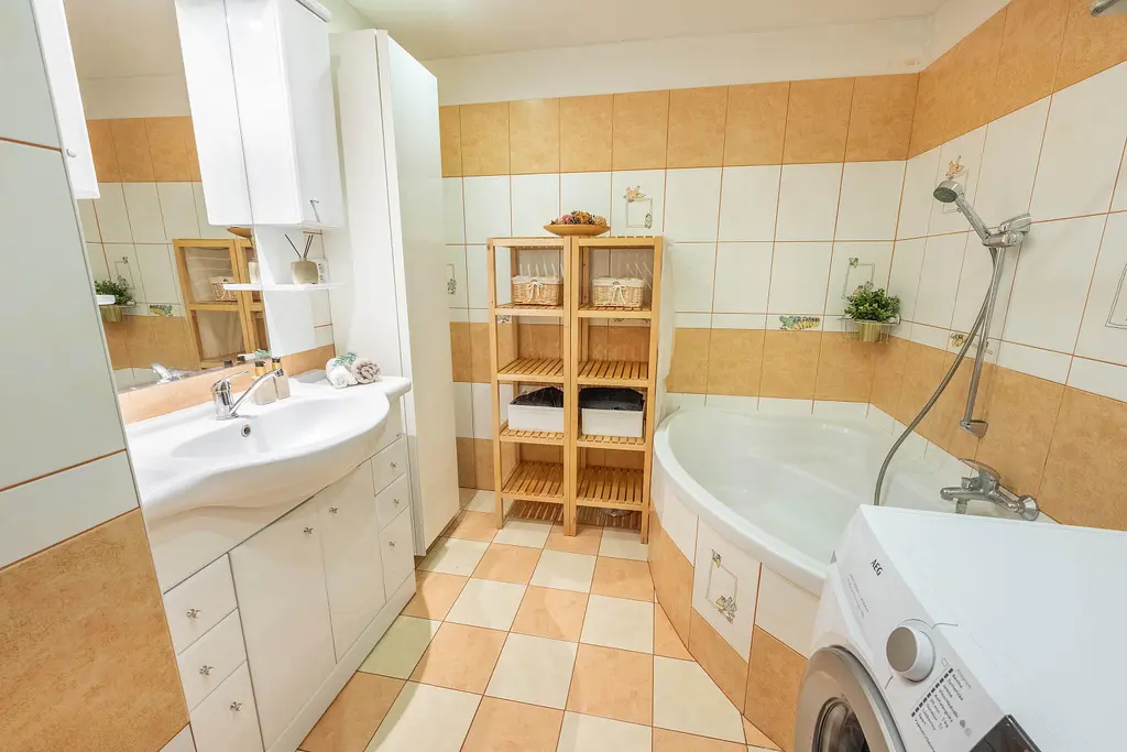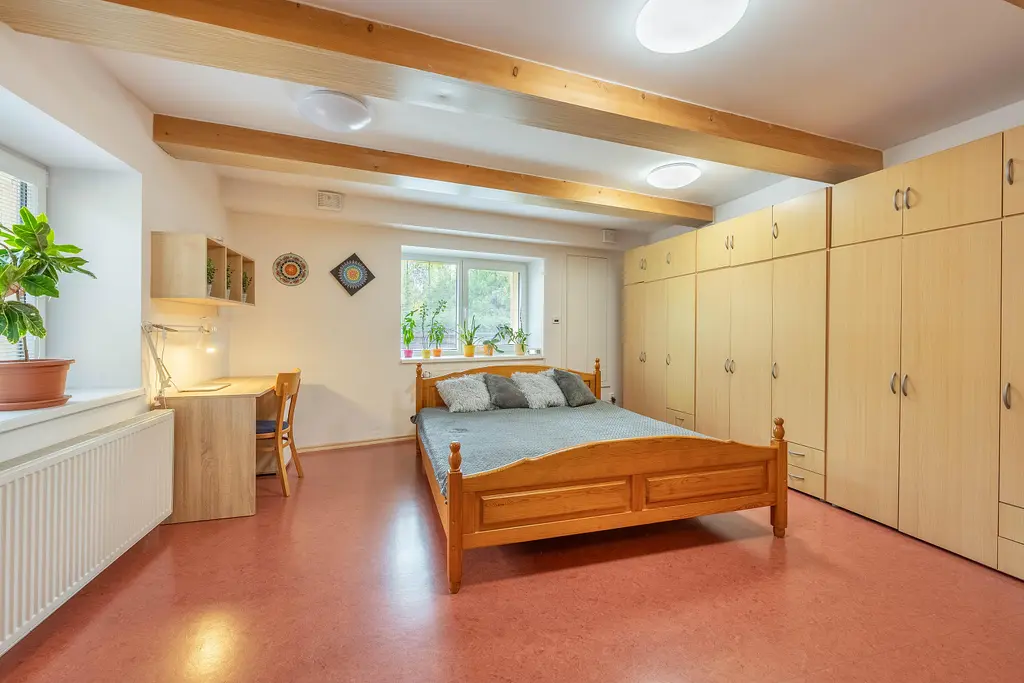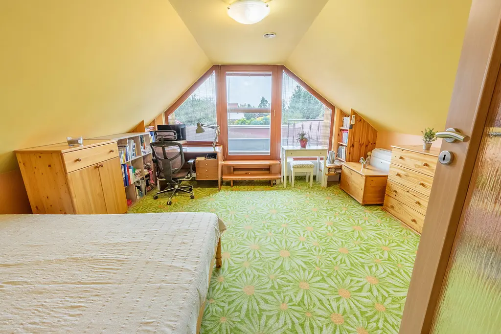 V prvním patře se nachází 2 pokoje, WC, malá šatna a velká průchozí šatna, která může sloužit jako další pokoj.