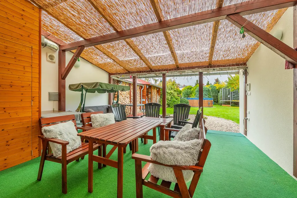 Tento cihlový dům byl zkolaudován v roce 2006 a je ve velmi dobrém stavu. Užitná plocha domu činí 241 m² + garáž pro 2 auta 36 m² + pergola. Dále je zde praktický zahradní domek a nadzemní bazén vyhřívaný tepelným čerpadlem. Součástí domu je též malý sklípek o ploše 6 m² přístupný z předsíně.