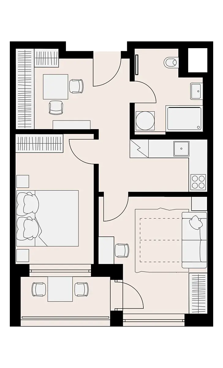 Byt sestává z jednopodlažního uspořádání a jeho užitná plocha činí 43 m². Jednou z atraktivních předností je také balkon o ploše 4 m², kde si můžete vychutnat ranní kávu nebo relaxovat po náročném dni. Díky osobnímu vlastnictví a exkluzivnímu zastoupení se jedná o velmi příznivou investici a pohodlné bydlení s veškerým potřebným zařízením pro denní život.