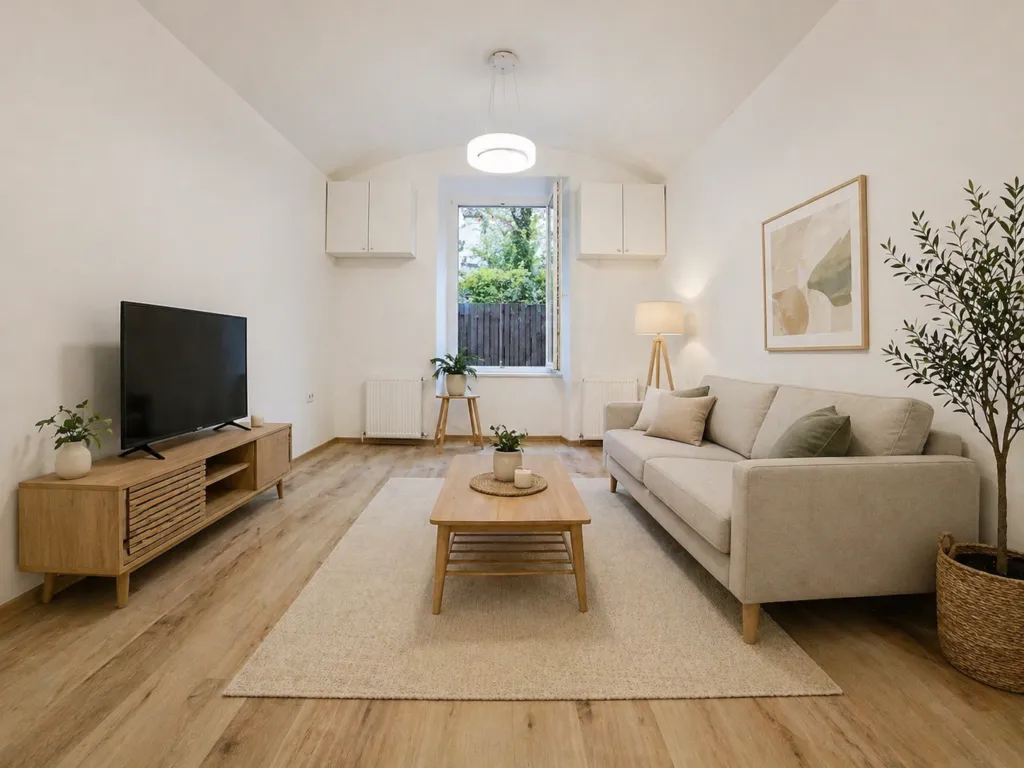 Dispozice bytu je praktická a nabízí efektivní využití prostoru včetně úložných možností. Velkým benefitem je právě venkovní prostor, ideální pro relaxaci, posezení nebo drobné zahradničení.