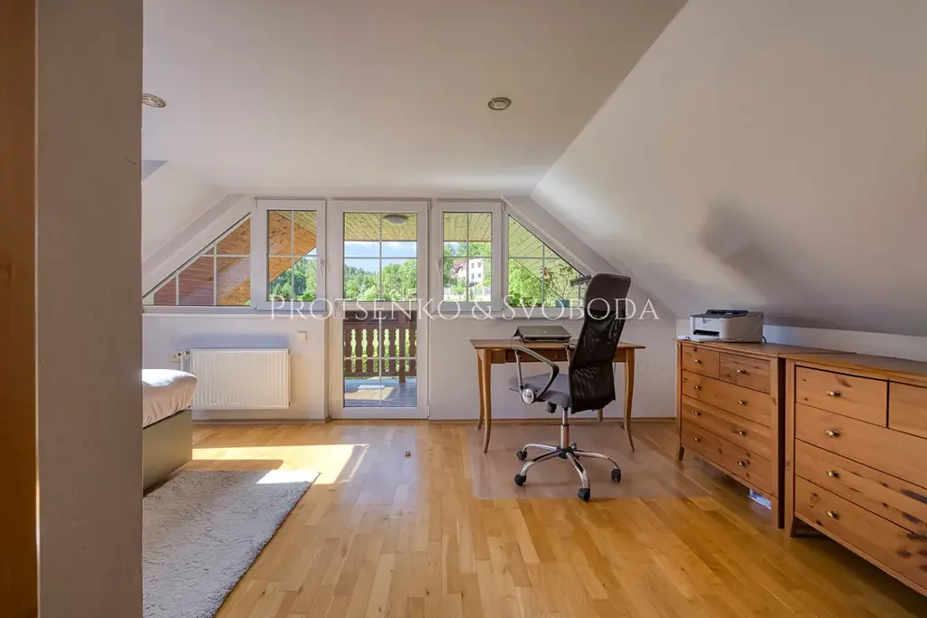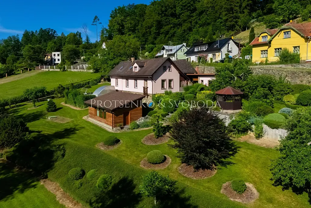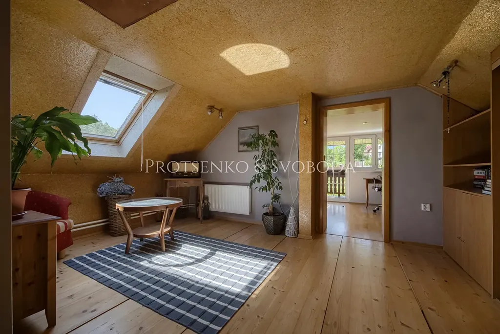 Uvnitř vás přivítá obývací pokoj s krbovými kamny, které vytvářejí hřejivou atmosféru skutečného domova. Dvě prostorné garáže umožňují rozšíření o další obytné místnosti – třeba pro hosty nebo ateliér. Na pečlivě upraveném pozemku potěší plně funkční udírna, venkovní bazén i samostatný zahradní domek proměněný ve wellness zónu se saunou – ideální prostor pro odpočinek.
