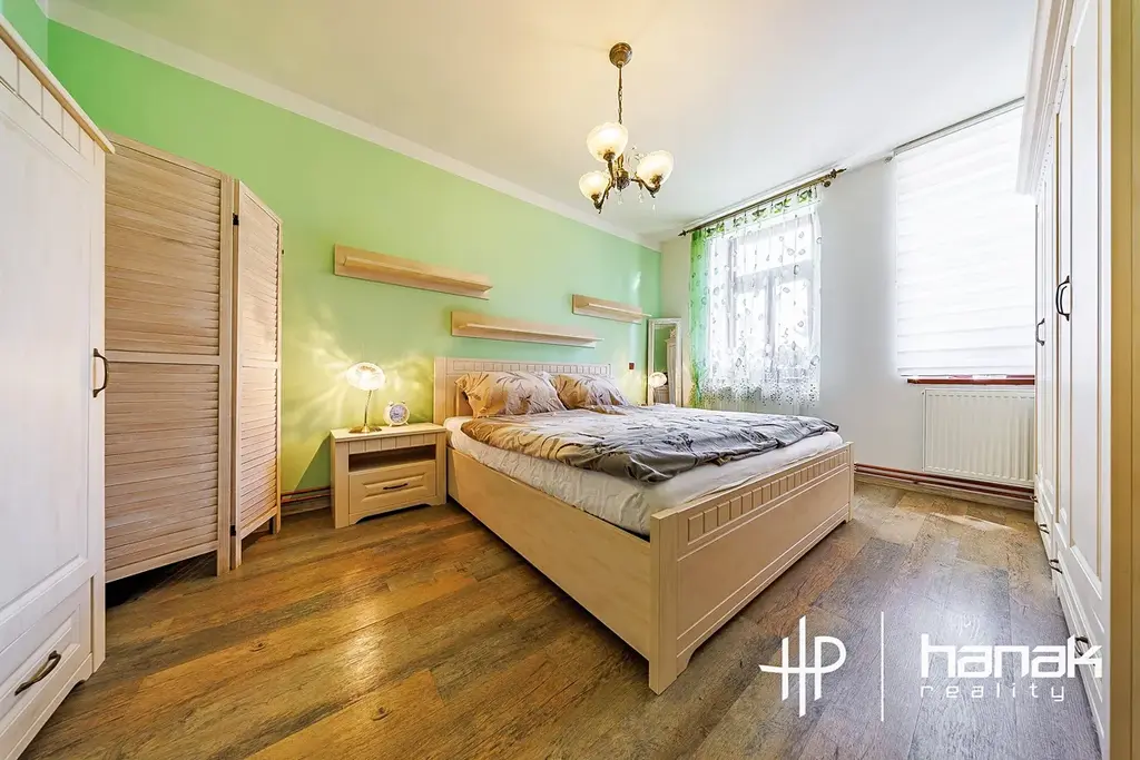 Bytová jednotka 2+1 je tvořena vstupní chodbou, obývacím pokojem, ložnicí, kuchyní, samostatným wc, koupelnou a technickou místností. Vstup je z ulice, z průjezdu i ze dvora. V této jednotce je vytápění plynovým kondenzačním kotlem. Deskové radiátory v kombinaci s podlahovým vytápěním v části bytu. Elektroinstalace je v mědi, rozvody vody a odpadu v plastu. Rozvody topení v mědi. Byt je zateplený z vnitřní strany. Postupně byl před 5-10 lety rekonstruován.