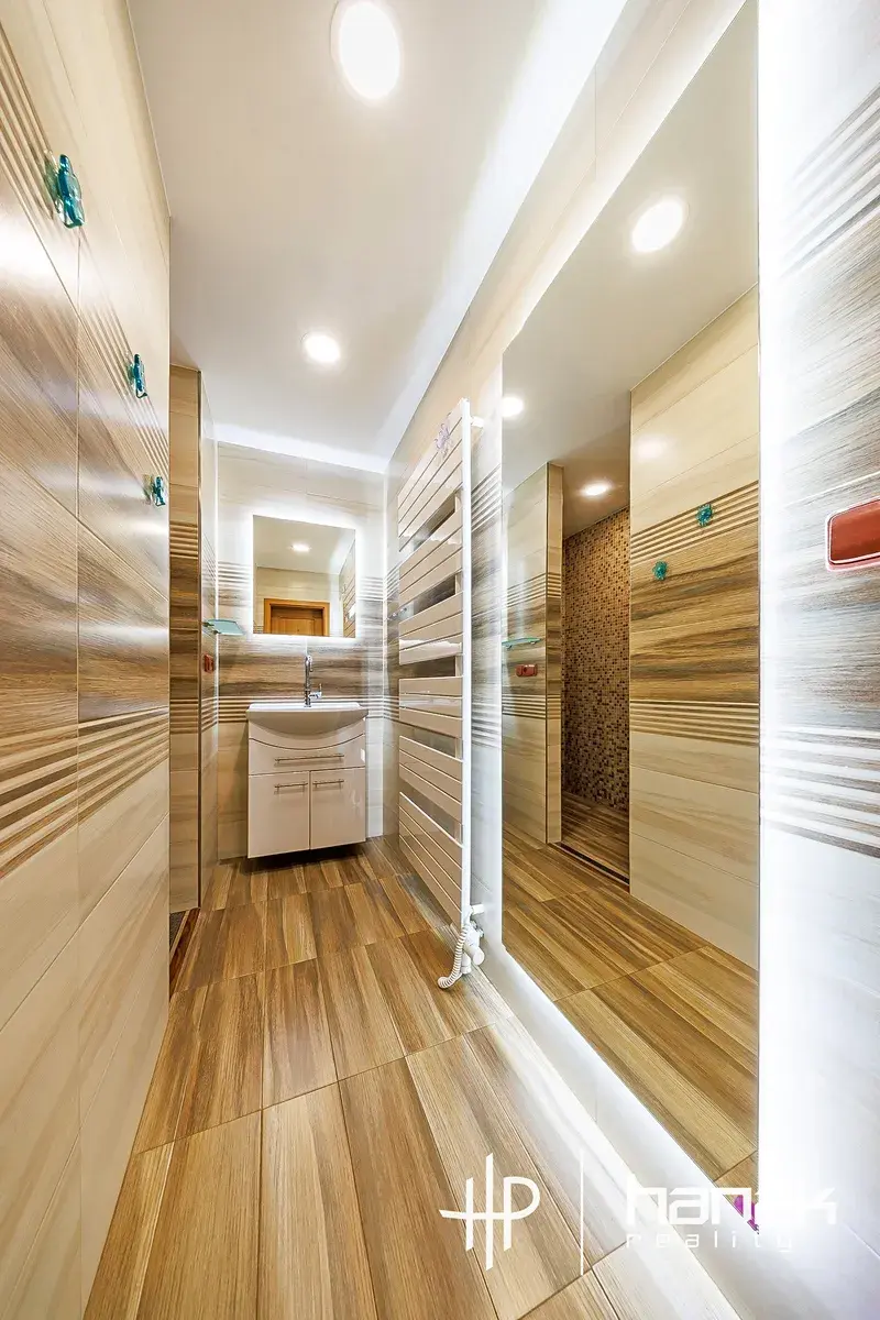 Bytová jednotka 3+kk má vstupní chodbu, ze které je přístup do všech místností. Ložnice, obývacího pokoje s kuchyňským koutem, pokoje, koupelny, wc, technické místnosti a skladu. Vstup je z ulice i ze dvora. Ohřev teplé vody pro vytápění a spotřebu je řešen elektrickým kotlem. Elektroinstalace z části v mědi, rozvody vody a odpadu v plastu. Rozvody topení v mědi.
