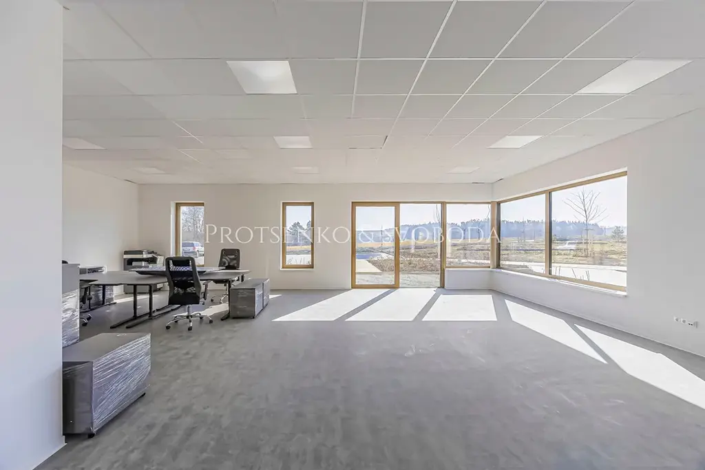 Společnost Protsenko & Svoboda v zastoupení majitele nabízí k pronájmu moderní areál o celkové podlahové ploše 937 m² se zahradou a parkovací plochou. Skvělá poloha v blízkosti dálnice D1, pouhých 30 km od Brna, zajišťuje snadnou dostupnost pro zaměstnance i klienty.