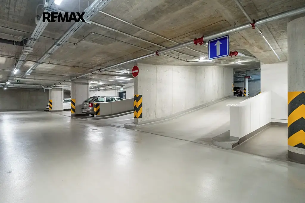 K bytu náleží plnohodnotné garážové stání, které zaručuje bezpečí a pohodlí pro vaše vozidlo a samostatný sklep 3 m².