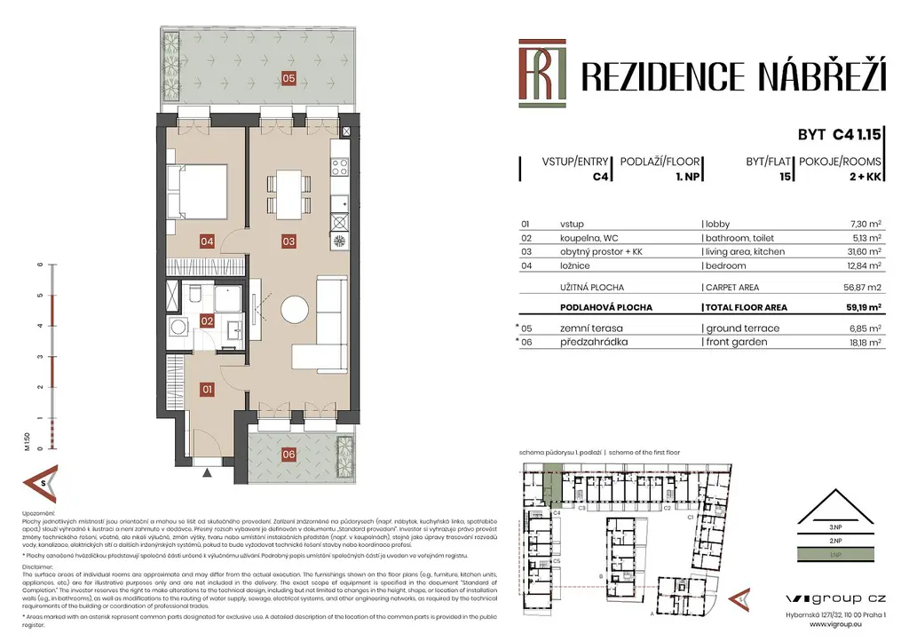 Nabízíme k prodeji byt 2+kk v Brandýse nad Labem-Staré Boleslavi. Tento byt se nachází v exkluzivní lokalitě ostrova v klidné části obce a je součástí projektu Rezidence Nábřeží. Byt má celkovou podlahovou plochu 59 m² a je umístěn v 1. patře třípodlažního domu. Byt má východozápadní orientaci s tím, že jedna ložnice a obývací pokoj jsou na východ, druhá ložnice pak na západ. K bytu náleží dvě soukromé předzahrádky a to jak na východní straně tak i na západní straně