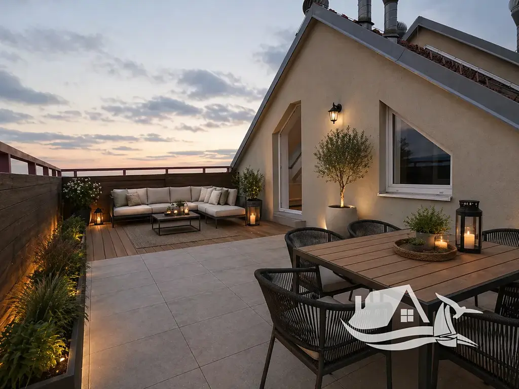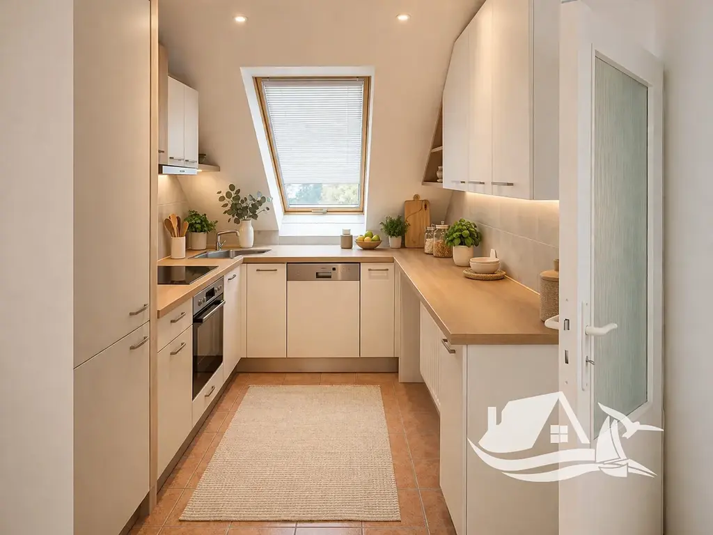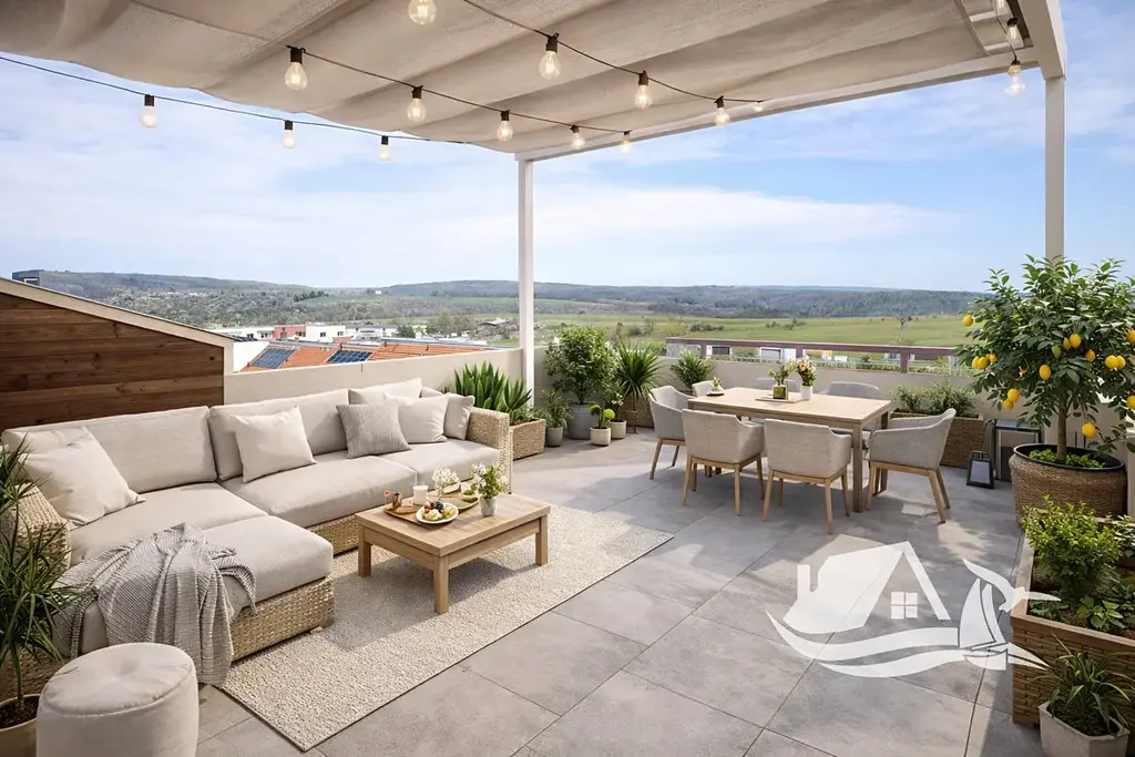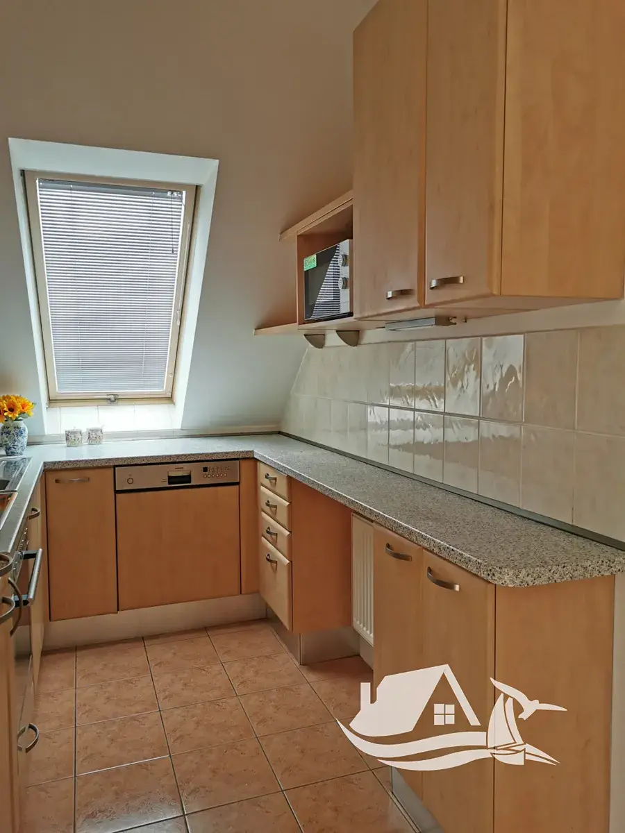 Byt disponuje podlahovou plochou 62,1 m² a je situován v podkrovním podlaží, což zajišťuje příjemnou atmosféru, dostatek světla i větší soukromí. Velkou předností je prostorná terasa orientovaná na tři světové strany, která nabízí ideální místo pro relaxaci, posezení s přáteli nebo klidné ranní kávy po celý rok.