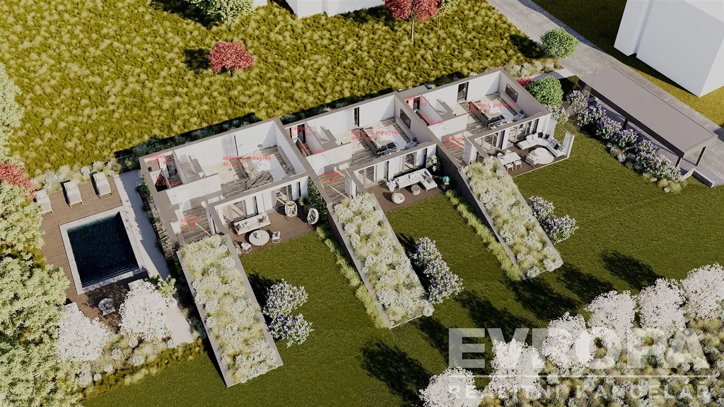 Zděné domy jsou postaveny výhradně za pomoci kvalitních materiálů a moderních technologií. Zateplení o síle 20 cm, trojskla, podlahové vytápění s tepelným čerpadlem, rozvody zabezpečovacího systému (včetně přípravy na kamery), příprava na FVE, elektrické předokenní žaluzie či bezfalcové dveře včetně magnetických zámků jsou samozřejmostí.