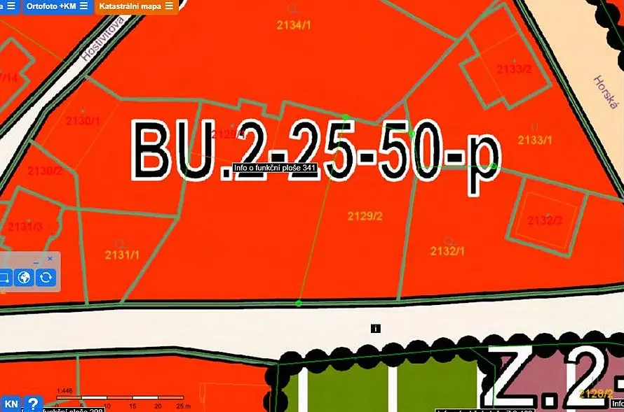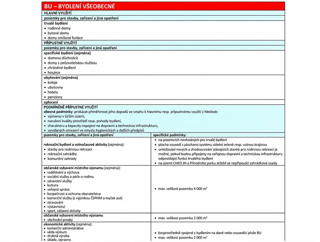 Dle územního plánu je pozemek zařazen v ploše BU – bydlení všeobecné, s možností výstavby rodinného domu, bytového domu nebo domu se smíšenou funkcí.