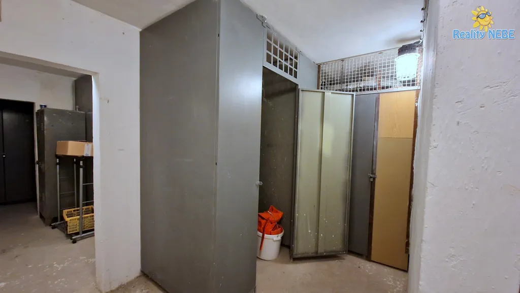 Součástí je kuchyňská linka s plynovým sporákem a širokou myčkou. Dále je v bytě mnoho vestavných skříní, plus ještě v suterénu železná sklepní kóje pro uskladnění dalších věcí.