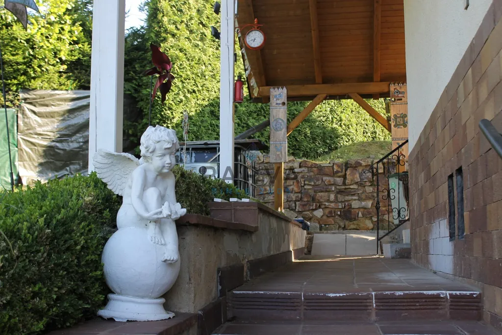 Okouzlí vás také pečlivě založená zahrada se zahradní architekturou. Díky poloze domu na kopci nad údolím nabízí pozemek nejen dostatek místa pro hry dětí, zahradničení či odpočinek, ale především krásný panoramatický výhled a maximální soukromí.