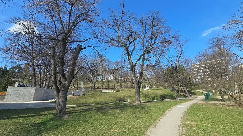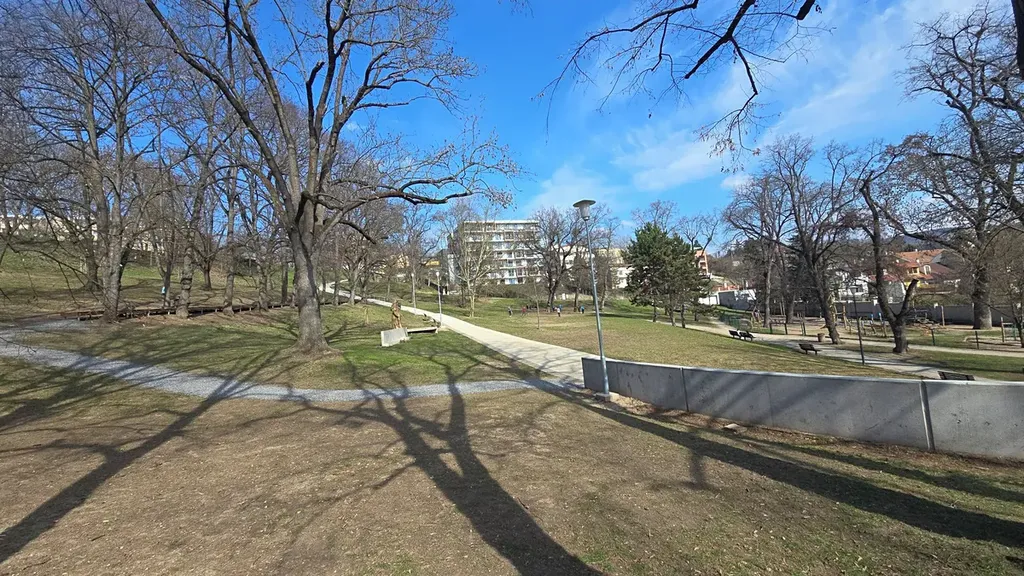 Velký, nově rekonstruovaný park jen 50 metrů od domu a rychlé spojení do centra.