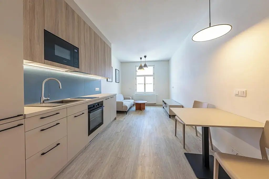 spokojený městský život. Kompletně zrekonstruovaný dům s výtahem, moderní vybavení bytu a
