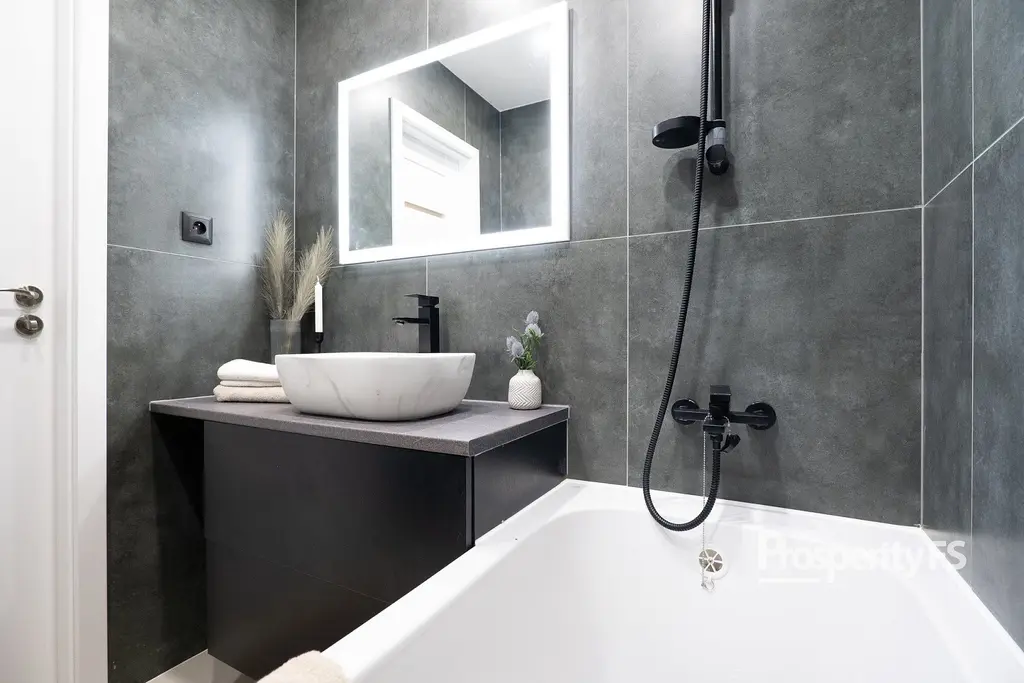 Byt prošel částečnou rekonstrukcí. Koupelna byla renovována v roce 2025, kuchyň v roce 2024 a je vybavená spotřebiči, takže je možné ji ihned plnohodnotně používat. Elektřina je v původním stavu. Podlahové krytiny tvoří kombinace koberců, laminátové podlahy a keramické dlažby.