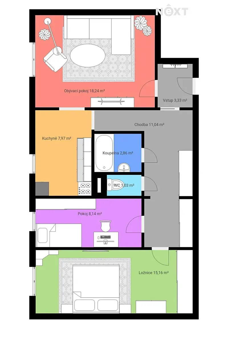 Jednotka je v původním stavu, což novému majiteli nabízí možnost kompletní rekonstrukce dle vlastních představ a vytvoření moderního domova přesně podle svého vkusu a potřeb. Dispozice 3+1 poskytuje dostatek prostoru pro rodinu, pár i jednotlivce, kteří ocení samostatné pokoje a praktické uspořádání.