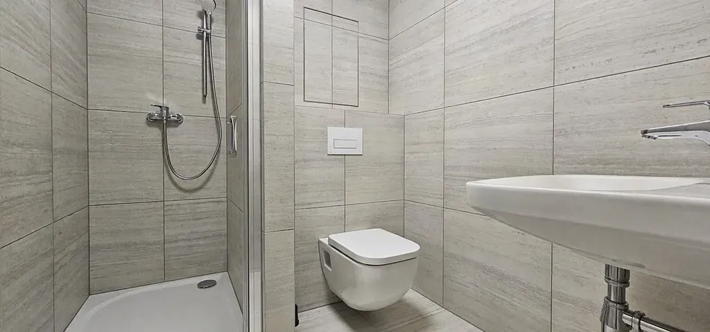 Koupelna disponuje sprchovým koutem, umyvadlem, toaletou a pračkou.