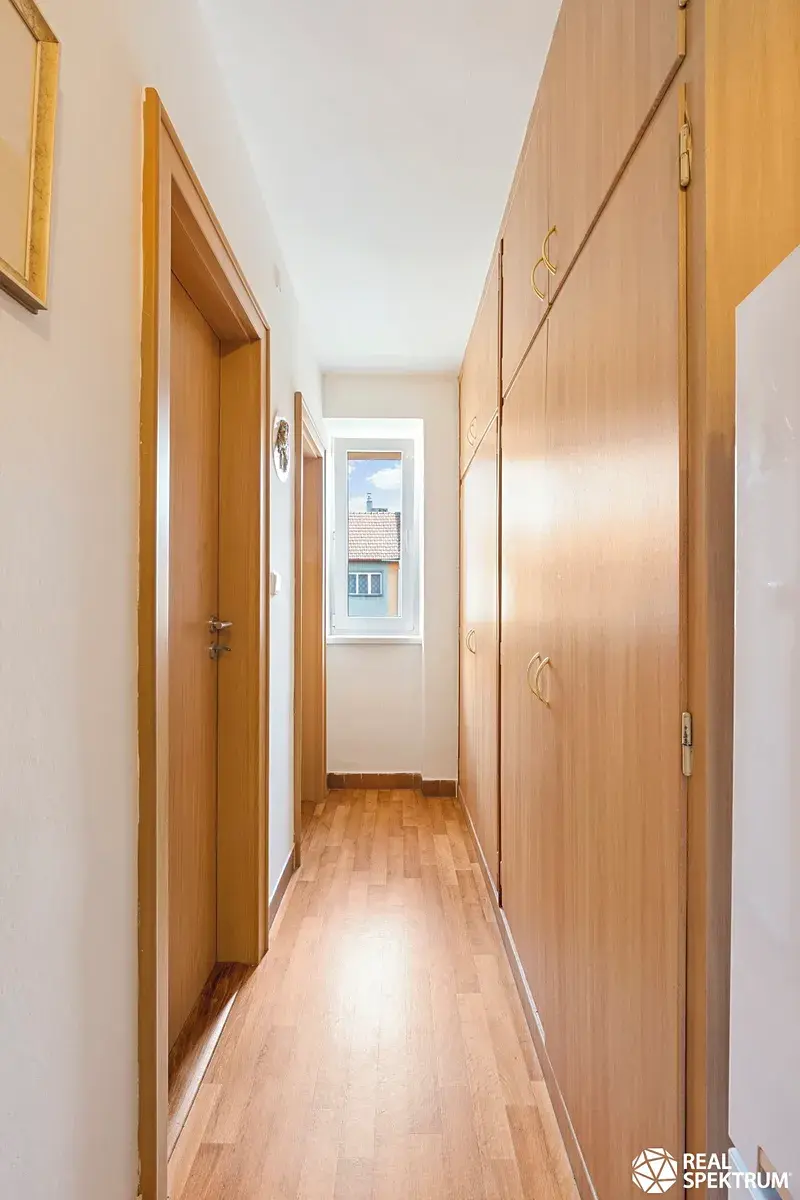 V exkluzivním zastoupení nabízíme k prodeji byt o dispozici 2+1 o celkové podlahové ploše včetně dvou sklepů 66,9 m2. Byt má menší balkon do ulice a prosluněnou prostornou lodžii situovanou do zahrady za domem. Oplocenou zahradu můžete využít například k sušení prádla, posezení nebo si zde mohou hrát vaše děti.