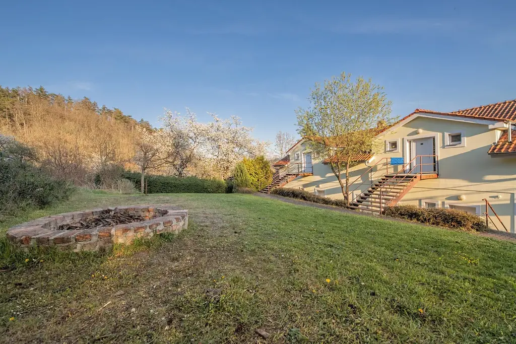 Zahrada: Součástí areálu je oplocená zahrada s ohništěm a posezením. Je to bezpečné zázemí a klidová zóna, kterou máte plně k dispozici pro relaxaci nebo čas u ohně pod širým nebem.