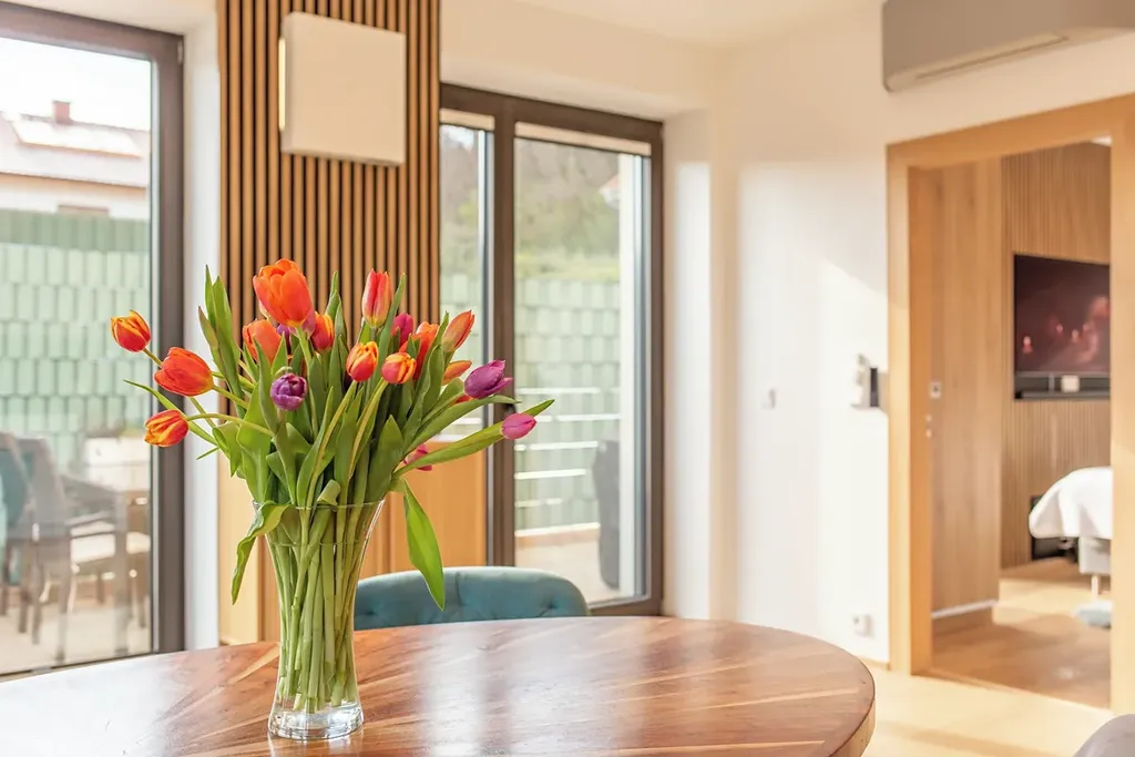Terasa (28 m²) a balkon (10,6 m²): Ranní káva na terase, víkendy na paddleboardu a západy slunce se sklenkou vína, které vás nikdy nepřestanou bavit. Tady se nežije podle hodin, ale podle nálady hladiny.