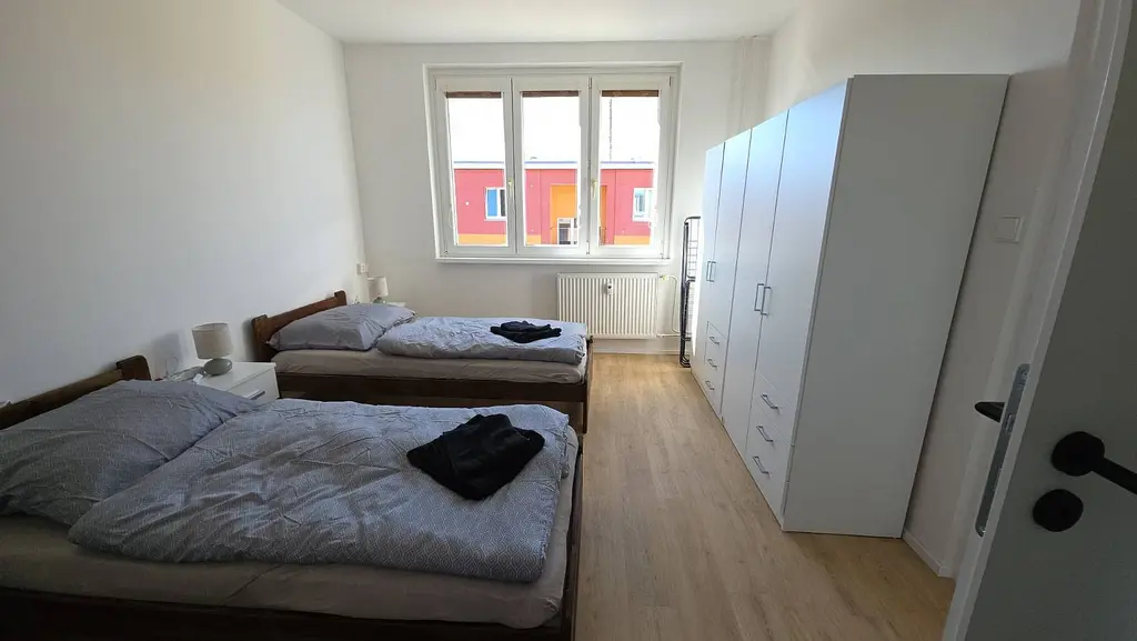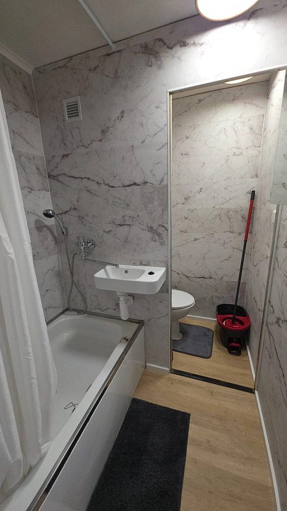 Byt prošel na začátku roku 2026 renovací. Nově jsou položeny lepené vinylové podlahy, bytové jádro je obloženo PVC panely, osazena byla nová sanita i nová rohová kuchyňská linka. V celém bytě proběhla výmalba.