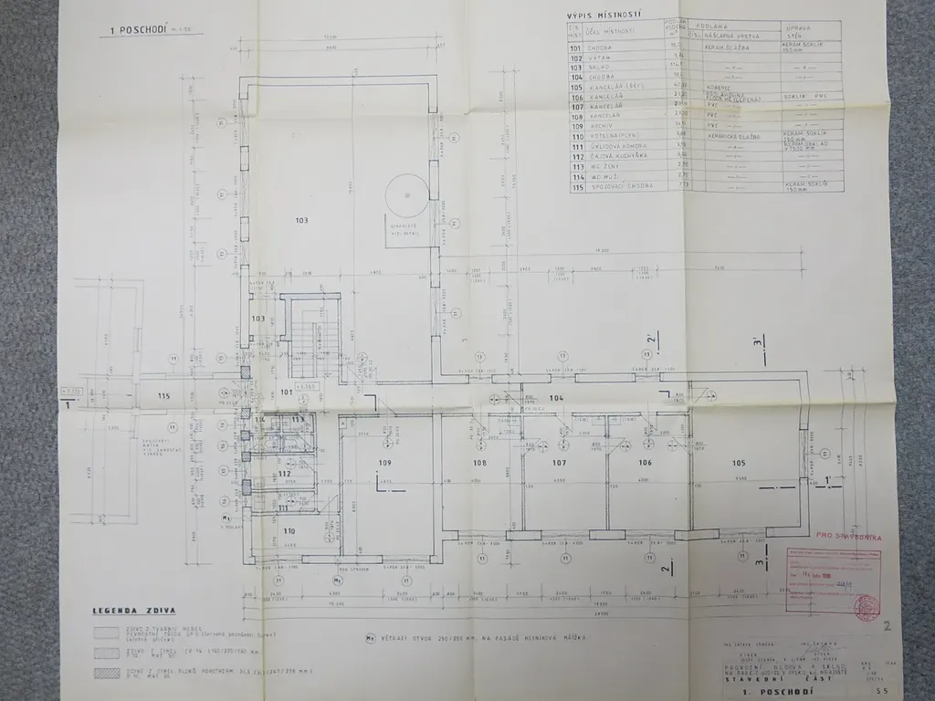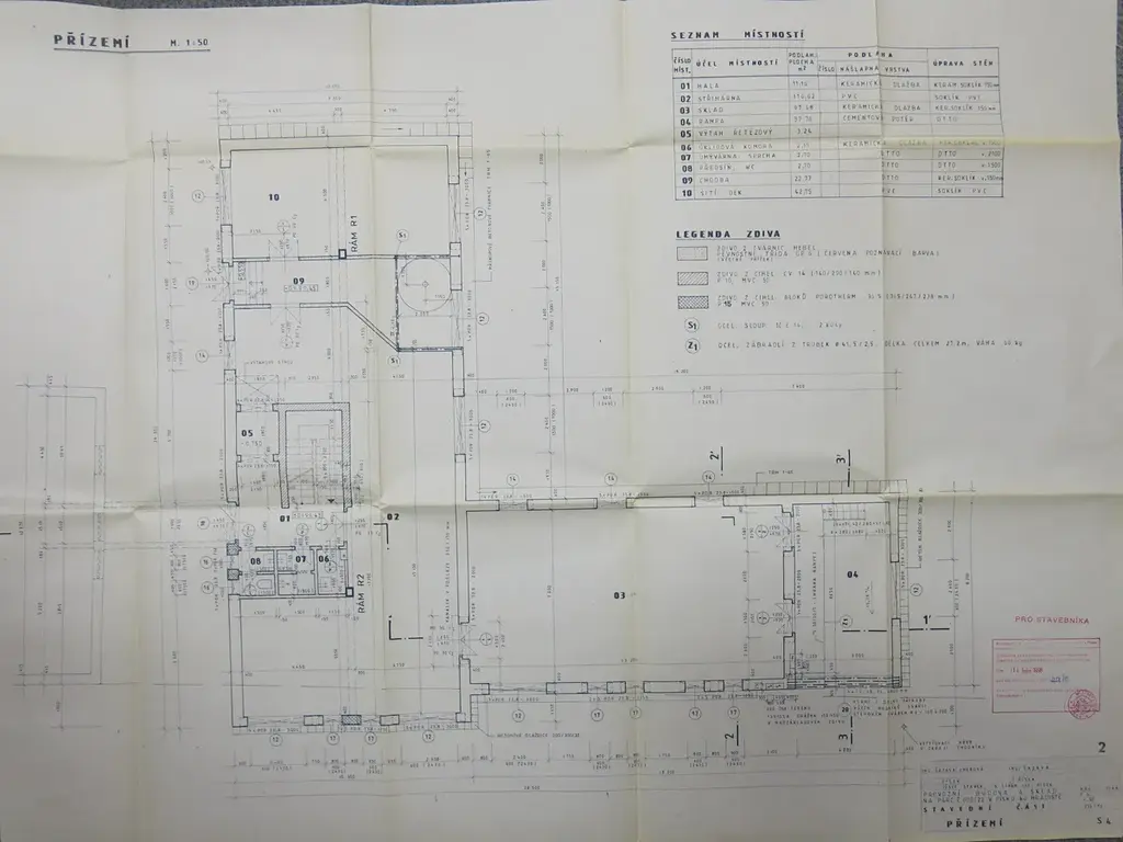 Budova má užitnou plochu přízemí 342 m2 a patro 342 m2, součástí objektu jsou dvě hydraulické rampy.
