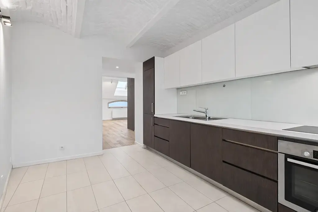 Byt je řešen jako dvoupodlažní a nabízí praktické oddělení denní a klidové části. K dispozici je kuchyňská linka se spotřebiči, dvě koupelny se sprchovým koutem a vanou a příjemná terasa orientovaná do klidného vnitrobloku.