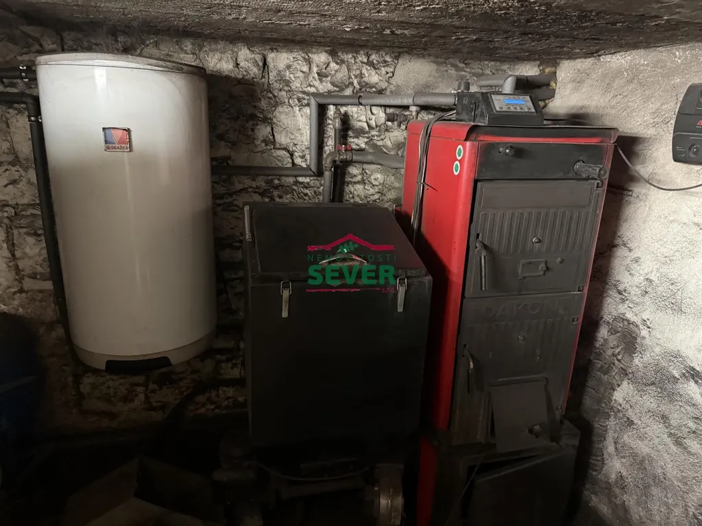 Nemovitosti SEVER vám zprostředkují prodej RD 7+1 v osobním vlastnictví, Třeskonice, Tuchořice, okr. Louny. Patový dům po rekonstrukci stojí na pozemku, o výměře 1340 m2, a je celý oplocený. Součástí kamenného, částečně podsklepeného domu je garáž 31 m2, kůlna, dvě dílny, pergola, skleník, zahrada 910 m2 a zásobník na užitkovou vodu 1000 l. V domě s obytnou plochou 160 m2 je zavedena elektřina 230 a 380 V, pitná voda, vytápění je řešeno elektrickým kotlem rozvedenými radiátory, ohřev vody kombinovaným bojlerem, nebo kotlem na tuhá paliva, WC do jímky. V domě jsou nové rozvody vody v plastu, elektřina v mědi, interiérové dveře, zárubně, plastová okna s dvojskly. Dům je také zateplený, má novou střechu, fasádu, dva komíny s revizí a jeden je vyvložkovaný. V přízemí je vstupní chodba, koupelna, WC, vstup do sklepa, špajz, kuchyně, čtyři místnosti, v patře jsou dvě místnosti, komora a nevyužitý prostor na další místnosti. V kuchyni je linka obložena dlaždičkami, kombinovaný sporák, myčka, lednice a jídelna. Koupelna s WC jsou celé v keramickém obkladu. V koupelně je vana, skříňka s umyvadlem, sprchový kout, přípojka na pračku, nástěnné topení a odvětrávací okno. Zůstávají velké skříně. Na udržované zahradě je prostor na relax a odpočinek, hotová podezdívka na bazén, rostou zde plodící jabloně, třešeň, hruška, ořech a rybíz. Dům se nachází 20 km od Loun a 11 km od Žatce. V případě zájmu zajistíme optimální financování našimi poradci.
