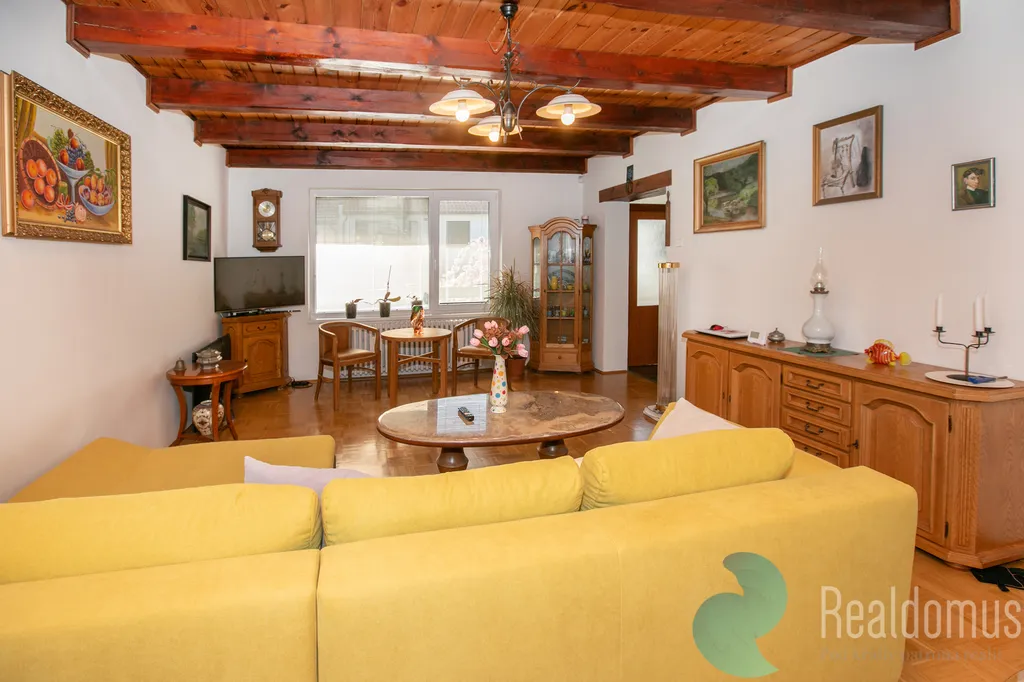 Otevřený obývací prostor s barovým pultem a vstupem na lodžii nabízí ideální místo pro rodinná setkání i posezení s přáteli. Druhá velká místnost s výhledem na zahradu a les poskytuje klid pro práci i odpočinek. Samozřejmostí je koupelna s vanou a WC.