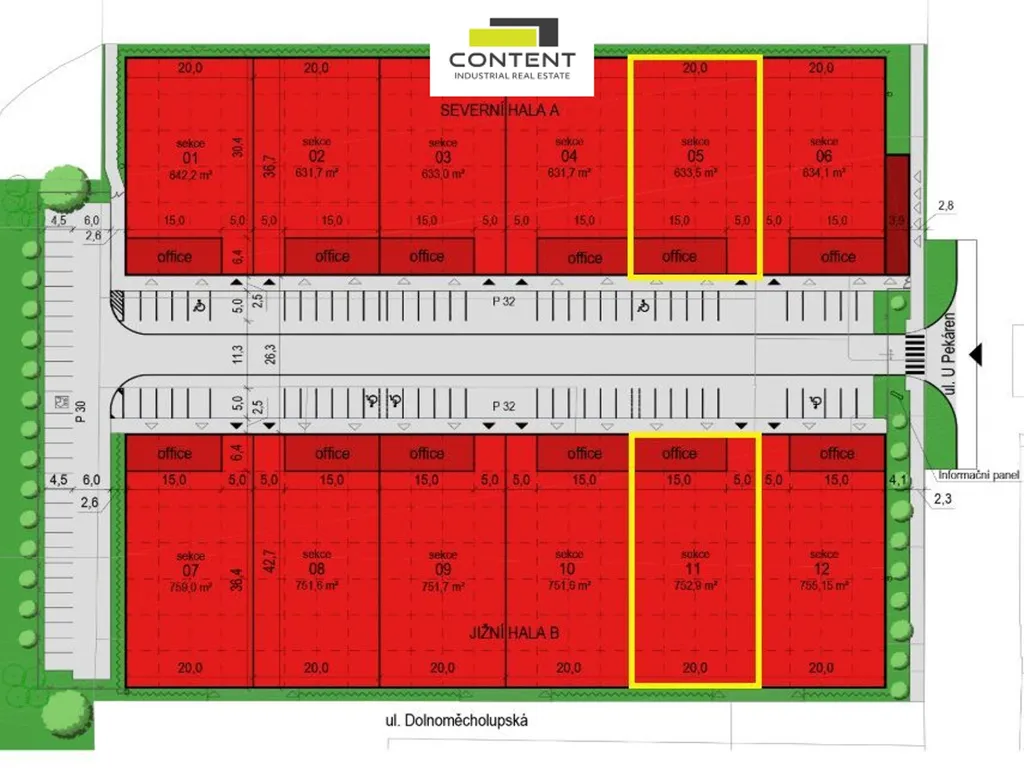- skladová plocha 633 m²,