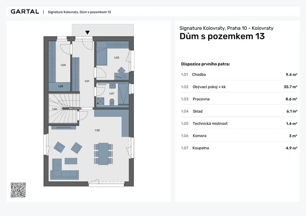 Toužíte po domě, kde jen zavřete dveře a hned ucítíte, že tady jste doma? Máme pro vás nabídku, které vám do detailu splní sen o vlastním bydlení. Nabízíme k prodeji moderní rodinný dům se zahradou o dispozici 5+kk (SK13) o celkové ploše 145 m2 v klidné lokalitě Prahy 10 na vlastním pozemku o výměře 389 m2. První, co si na svém novém domovu zamilujete, je prostor. Je ho tu tolik. Domy jsou promyšlené do posledního metru čtverečního a s dostatkem úložných řešení. Obývací pokoj je spojený s kuchyní, v ložnici na vás čeká soukromá šatna, kde si každé ráno v klidu vyberete outfit, ve kterém se budete cítit skvěle celý den, a děti půjdete postupně budit do dvou velkých samostatných pokojů. Pokud pracujete z domova určitě oceníte také útulnou pracovnu.