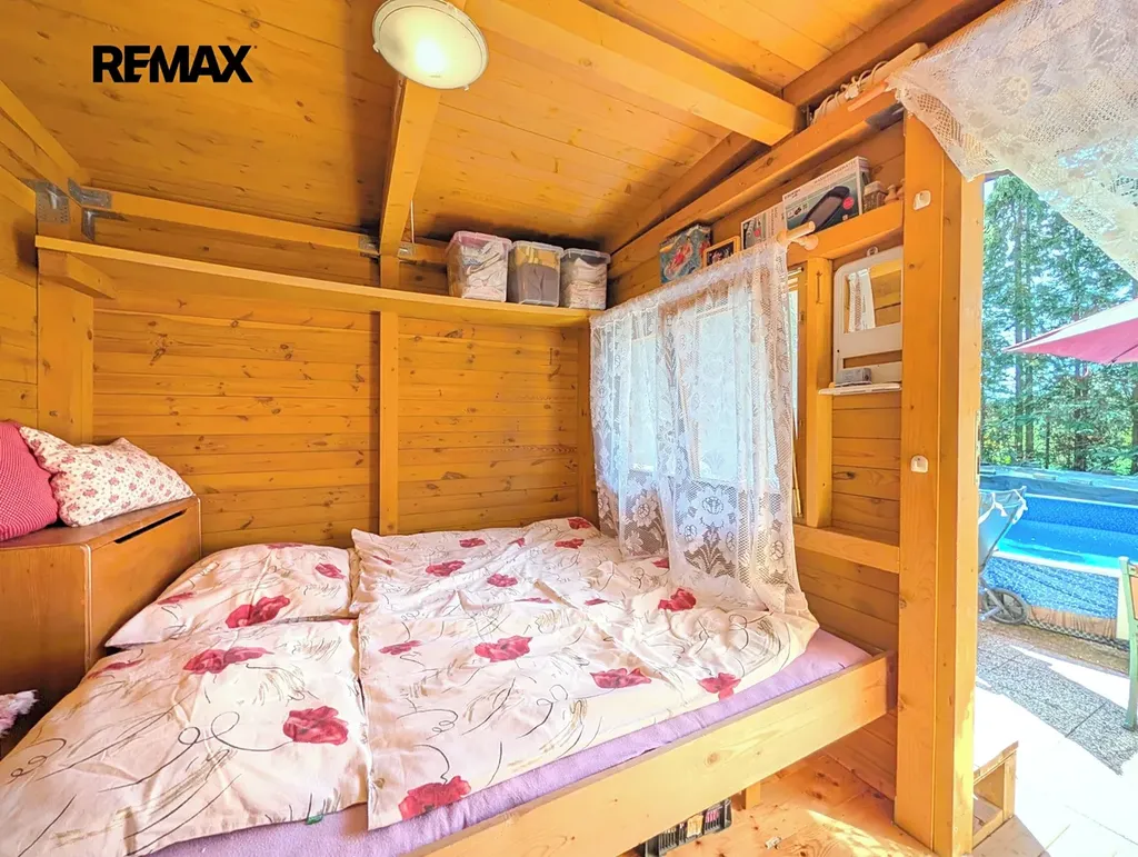 Pozemek je rovinatý a rozdělený do tří funkčních částí – odpočinkové, okrasné a užitkové. Celý areál působí velmi harmonicky a díky vzrostlým stromům nabízí maximální soukromí. Přístup k pozemku je zajištěn po obecní cestě.