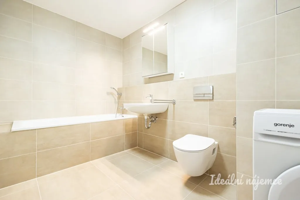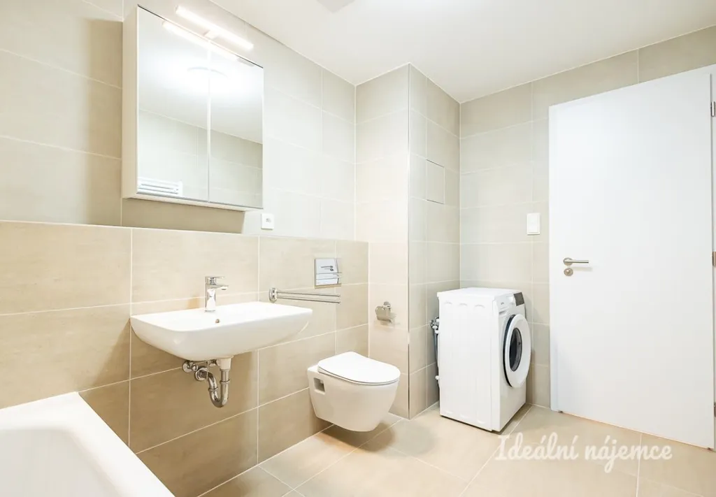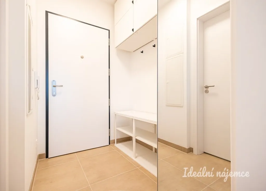 Byt se nabízí nevybavený nábytkem, takže si ho můžete zařídit dle svých preferencí. Kuchyně disponuje lednicí s mrazákem, myčkou, elektrickou troubou, varnou deskou, digestoří a barovým stolem s 2 židlemi. V koupelně je vana, umyvadlo, zrcadlo, koupelnová skříňka, pračka a závěsné WC. V předsíni najdeme vestavěnou skříň a police.
