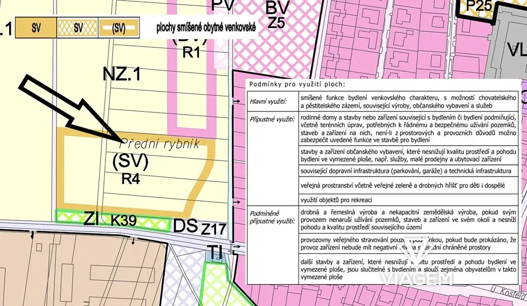 Pozemek se nachází v ploše smíšené obytné venkovského charakteru, což znamená možnost výstavby rodinného domu nebo zázemí pro bydlení (v rámci budoucího řešení celku).