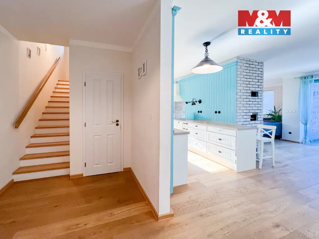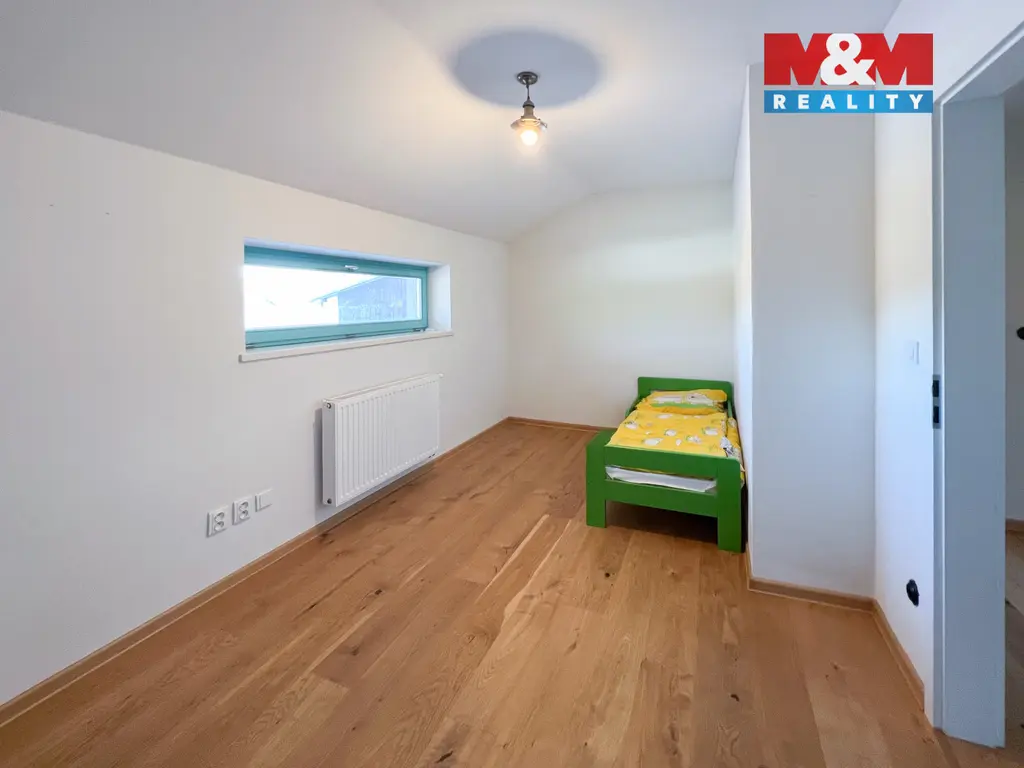 Interiér zaujme kvalitními dřevěnými podlahami, špičkovými spotřebiči a promyšleným vybavením. Dominantou obývací části je krb s výměníkem napojený na akumulační nádrže, který pohodlně vytopí celý dům a lze jej kombinovat s elektrokotlem. Voda je z vlastního vrtu. Krásná moderní kuchyně disponuje praktickou spíží. Ve 2. patře najdete 2 dětské pokoje a hlavní ložnici s vlastní prostornou šatnou.