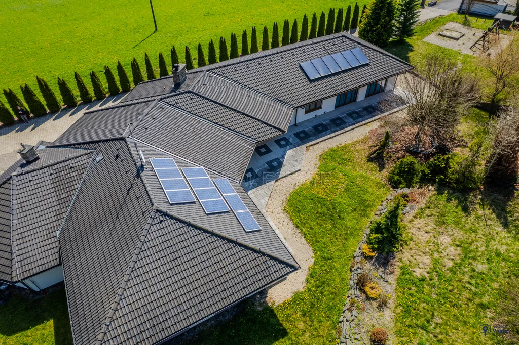 Dům je vybaven podlahovým vytápěním a moderním plynovým kotlem, jakož i tepelným čerpadlem, což přispívá k úsporám na energiích. Dále jsou nainstalovány solární panely, které umožňují ekologické a ekonomicky výhodné vytápění a ohřev vody. Samozřejmostí je dostatek vody z místního zdroje a odvod odpadních vod řešený ČOV pro celý objekt.
