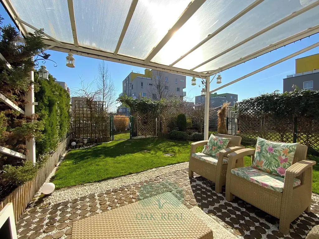 Zahrádka nabízí příjemné posezení kryté pergolou a je lemována vzrostlými keři a okrasnými dřevinami, které zajišťují dostatek soukromí. O její údržbu se stará automatický závlahový systém a robotická sekačka s mulčováním. Ve večerních hodinách je zahrádka osvětlená a doplněná o lihový krb, ideální pro klidné posezení.
