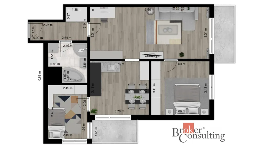 K doplacení anuity zbývá cca 890.000 tis Kč v pravidelných měsíčních splátkách splátkách cca 20.400,- Kč/měs do 9/2029, pak možno převod do osobního vlastnictví.
