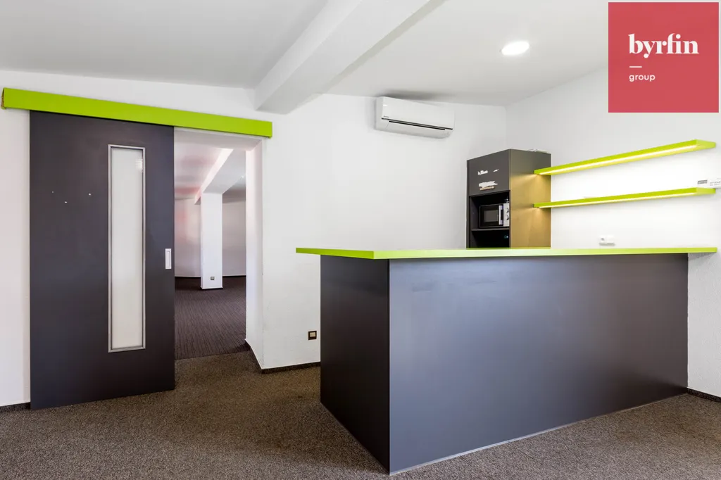 Prostory tvoří soubor přibližně 7 samostatných kanceláří o velikosti 25–50 m², doplněný o jednací místnosti, skladové zázemí, kuchyňku, sociální zařízení a sprchy. Dispozice umožňuje variabilní využití – ideální pro sídlo firmy, administrativní zázemí, služby, showroom nebo kombinaci kanceláří a provozu.