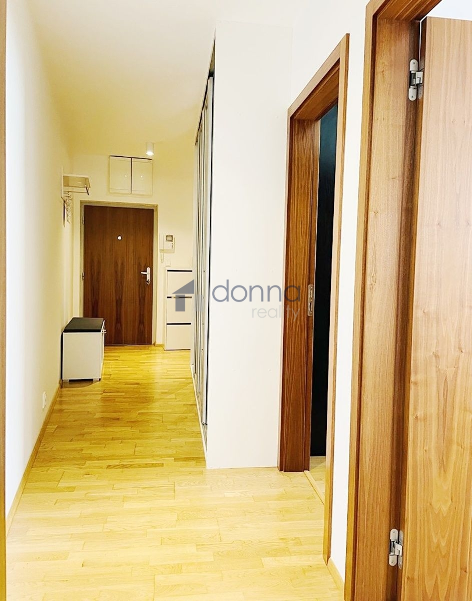 Vstupní chodba, prostorný obývací pokoj se vstupem na lodžie a s vybaveným kuchyňským koutem (sklo-keramická deska, trouba, lednice, mrazák, mikrovlnná trouba a myčka nádobí) včetně jídelního prostoru, hlavní ložnice s vlastní koupelnou a vstupem na balkon, další ložnice a druhá koupelna. K dispozici 3 prostorné vestavěné skříně.